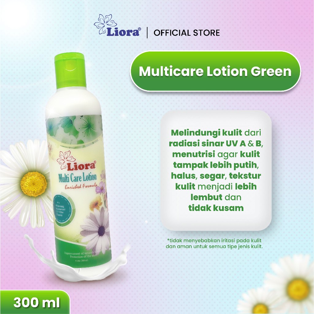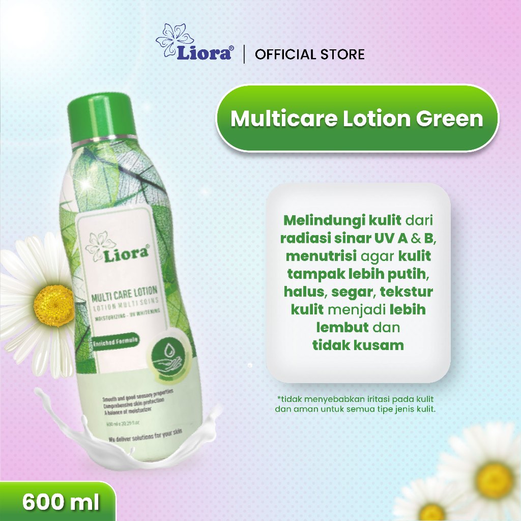 Liora Whitening Body Lotion merupakan lotIon dengan aroma bunga segar yang dilengkapi dengan shea butter, whitening, UV filter, dan vitamin. Lotion ini akan membantu melembabkan, mencerahkan, menyehatkan, serta melindungi kulit dari radiasi sinar UV A dan UV B. Semua yang kulitmu butuhkan ada di dalam lotion ini.