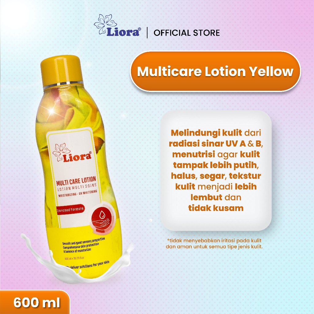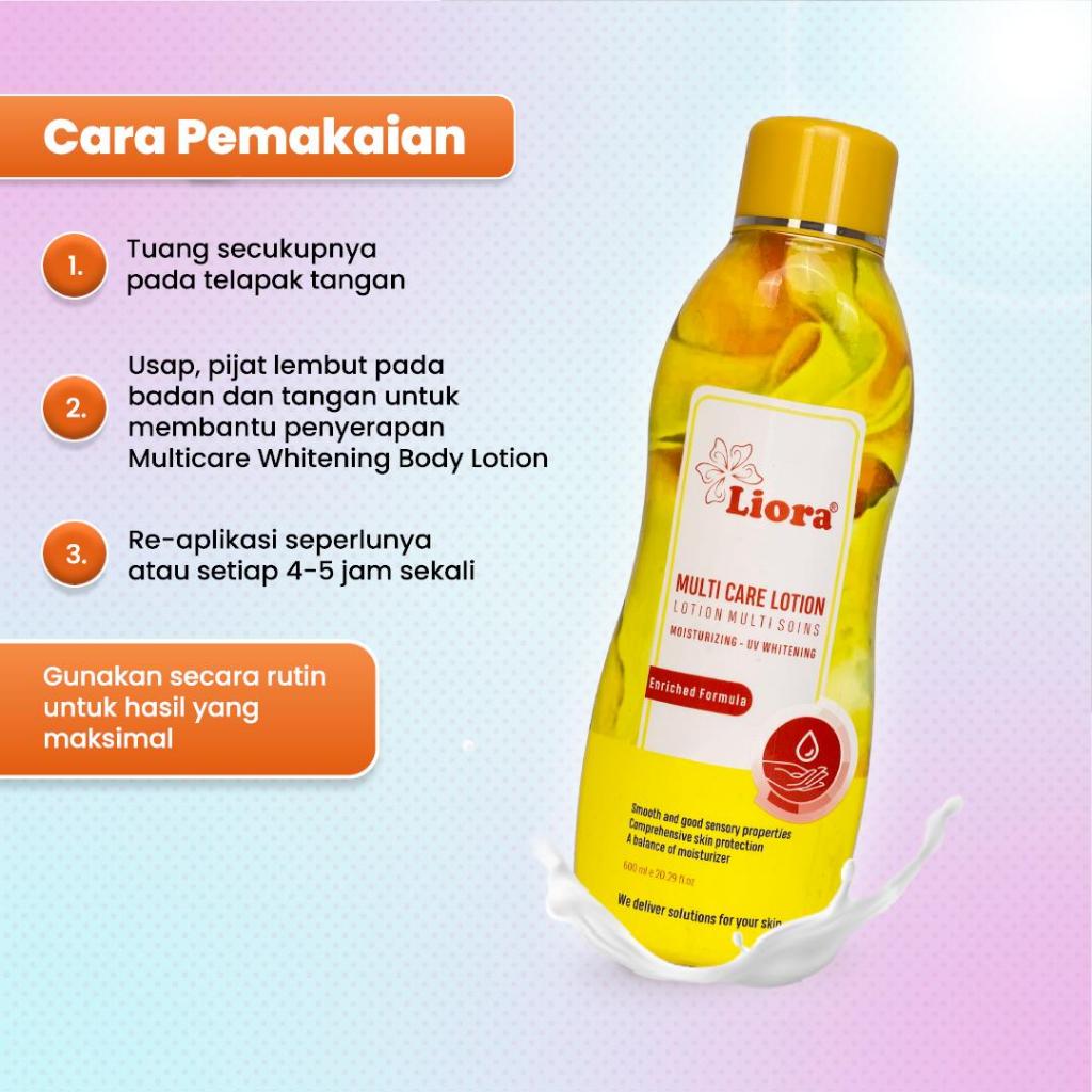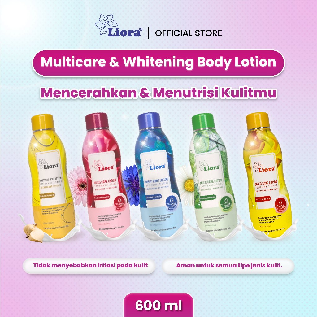 Liora Whitening Body Lotion merupakan lotion dengan aroma bunga segar yang dilengkapi dengan shea butter, whitening, UV filter, dan vitamin. Lotion ini akan membantu melembabkan, mencerahkan, menyehatkan, serta melindungi kulit dari radiasi sinar UV A dan UV B. Semua yang kulitmu butuhkan ada di dalam lotion ini.